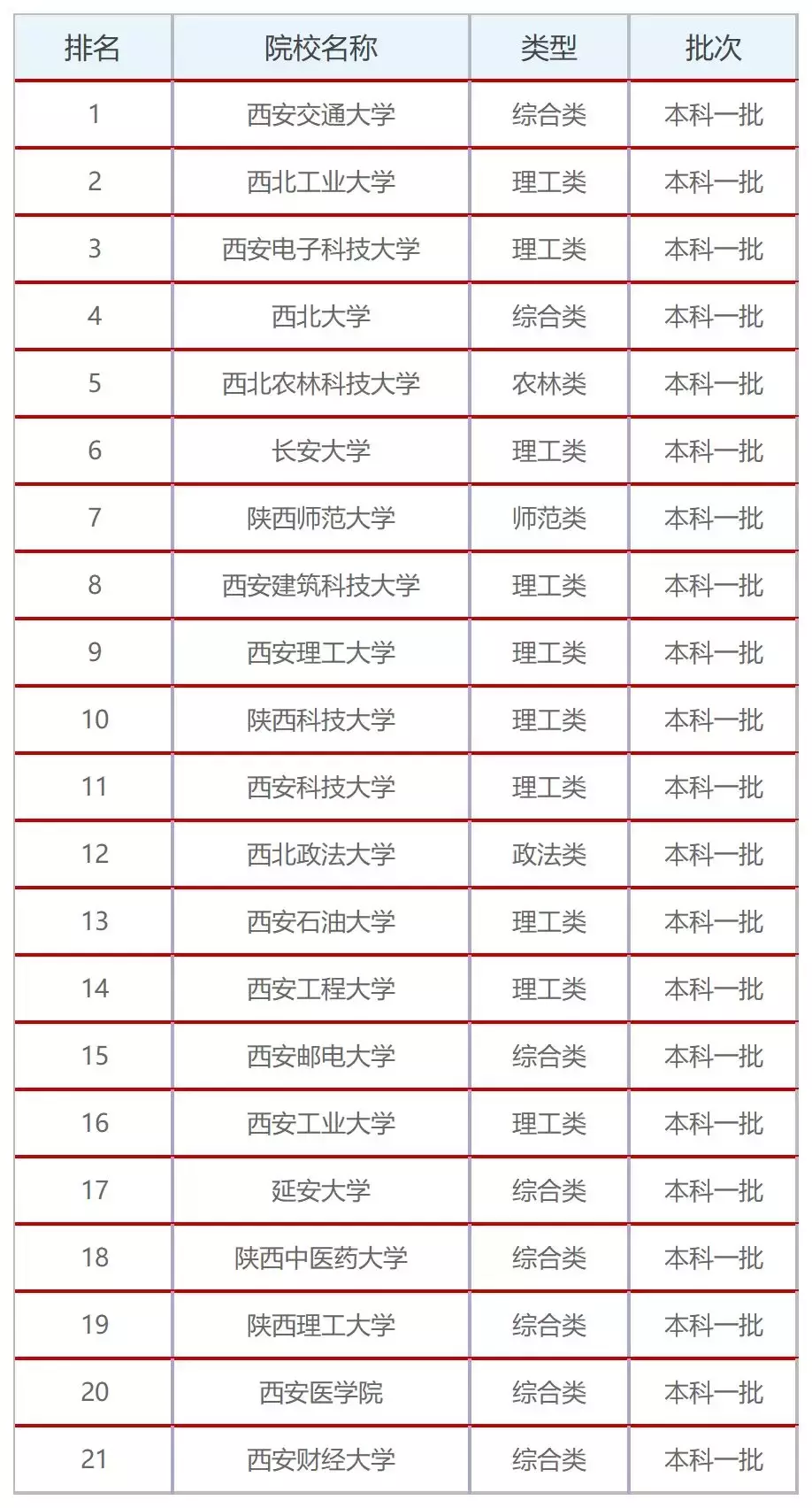 陕西本科一批院校名单