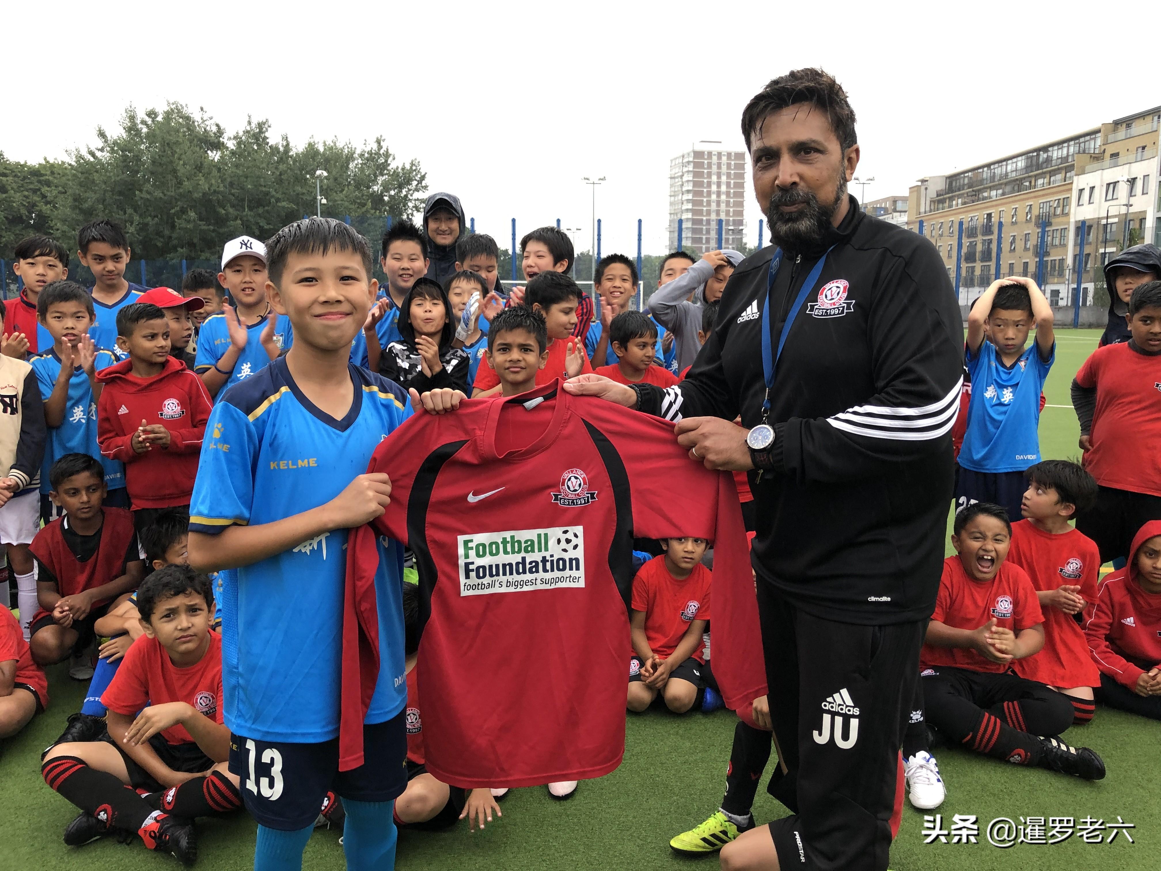虽然此次夏训只有短短的十一天,但是孩子们却参加了伦敦当地两个杯赛,并进行了多场友谊赛!图为北京市新英才的小球员在接受英国瓦兰斯足球俱乐部(VALLANCE FC)的礼物。