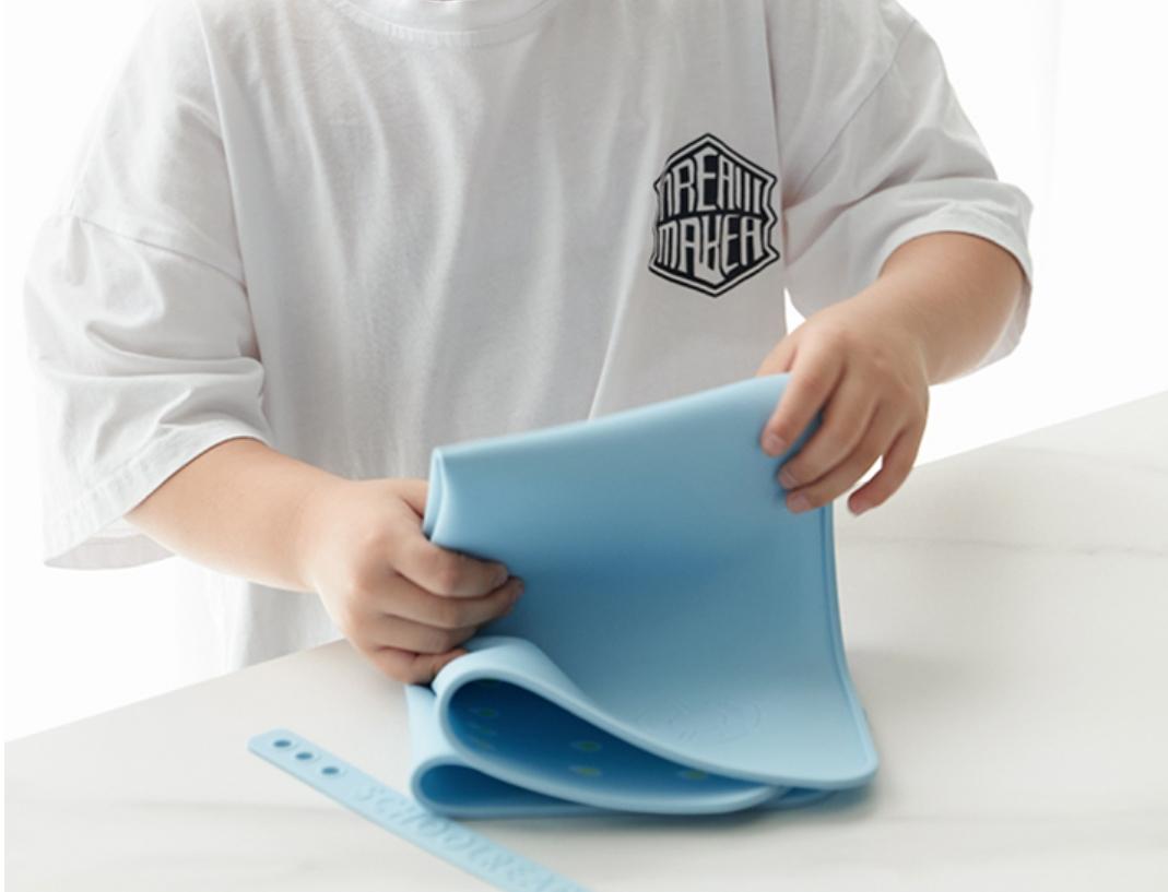 现在的小学生不能回家吃饭,需要准备餐垫,可以防止将菜汤、实物残渣、油渍等弄到课桌上。强烈推荐选择硅胶的餐垫不仅清洁方便,用水冲洗就干净了,而且不像布餐垫那样水洗后需要晾干。硅胶餐垫也比布餐垫防滑,孩子在学校用餐时候使用也不用担心餐具滑落。