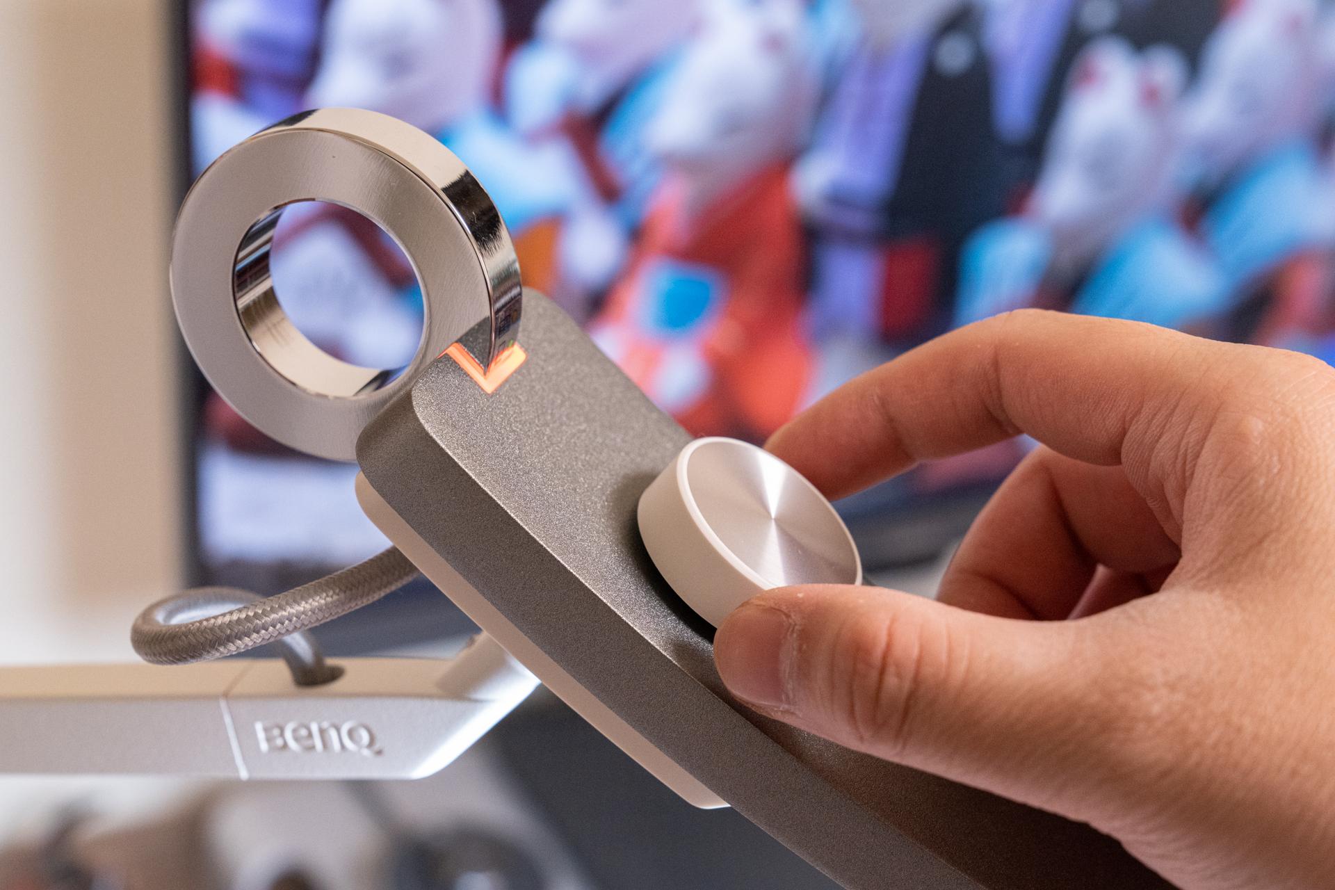 明基 WiT Floor支持13级亮度+13级色温,共计169种灯光梯度的调节,通过飞梭旋钮的按压在亮度&色温间切换,旋转增减调节。