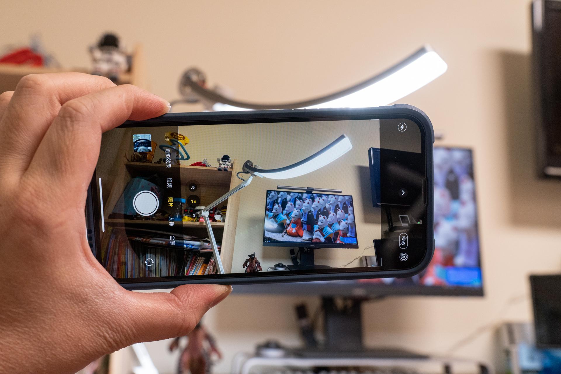 明基 WiT Floor是一盏欧盟认证无蓝光危害的落地灯,同时通过了IEEE无频闪认证,人眼就算是长久在这样的灯光下也不容易感到疲劳。使用手机测试一下,打开手机的摄像头,对着灯光,画面抖动就是有频闪,不抖动则是无频闪,我测试明基 WiT Floor确实没有频闪。