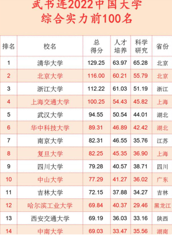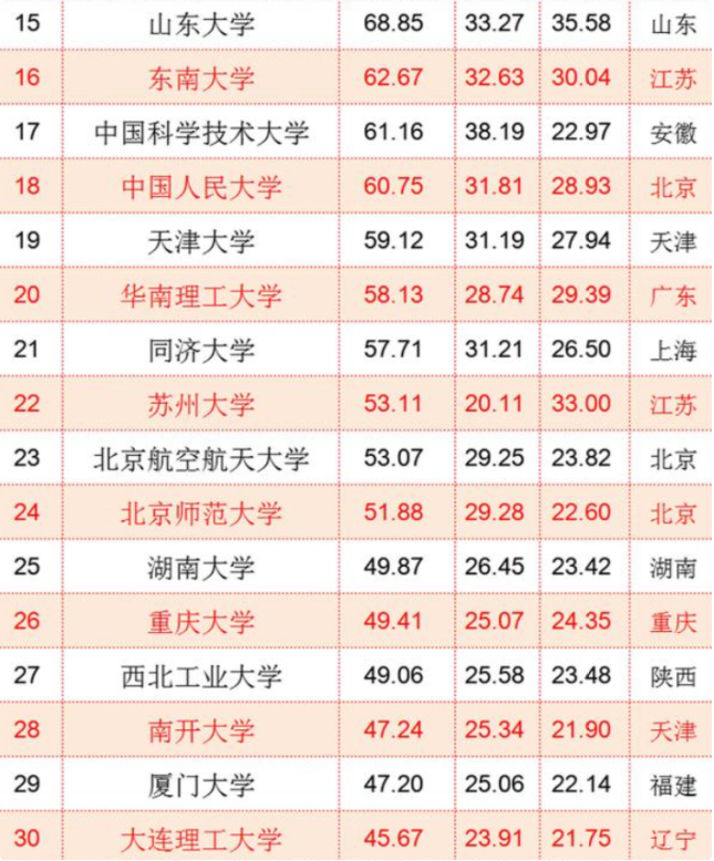 另外,浙江大学、上海交通大学、武汉大学则分列第三至五位,其次是华中科技大学、南大、复旦、川大、中山大学。