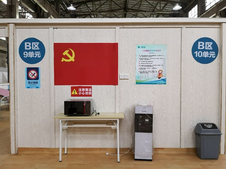 为了让患者感受到更多关爱,每个病区内设有饮水机、淋浴间、移动厕所、空调、电视机、微波炉、WIFI等。每张病床也放置了一个“百宝箱”,里面装有卫生纸、洗发水、漱口杯、接线板、香皂、拖鞋等18件套,完全可以满足病患的基本生活需求。每个分舱内还设有图书角、广播站等。汉汽方舱医院的指挥长杨忠说, “积极的心态也是免疫力。考虑到入住的大多是轻症患者,除了基础设施的建设外,我们更加突出强调人文方面的建设。患者住在这,心情放松,免疫力自然上来了。”