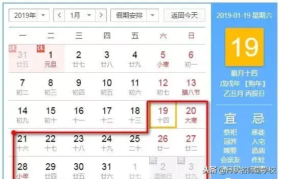 寒假从2019年1月19日开始, 2月20日结束