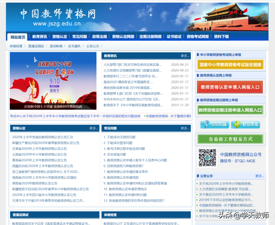 作用:中国教师资格网,乍一看和上面的网站名字非常相似,但是职责却完全不同,主要负责笔面试之后的教资认定的报名查询,以及教师资格证的定期注册,当然上面还有许多公告,但是一般大家都不会看~