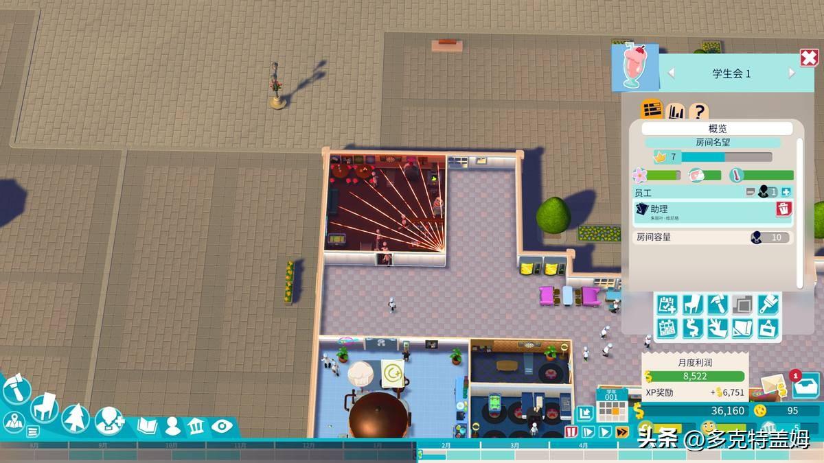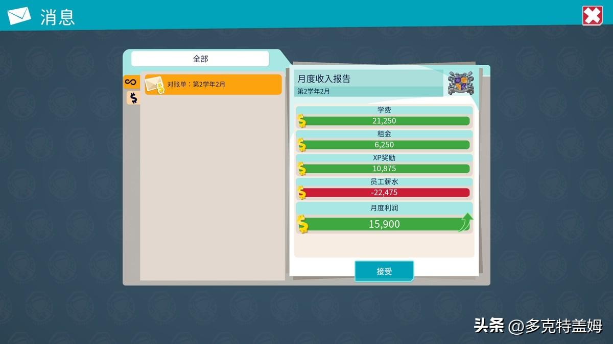 除去学生要缴纳的学费之外,学校还可以收取一些设施的租金,学生通过学习获得的经验值也会换算成资金奖励,最后再减去发给员工的薪水、建造费用和购置费后,即为学院的毛利润了。