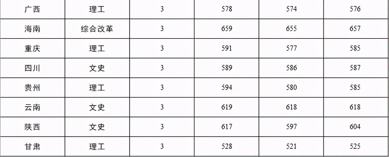 2,公安大学2019年在各招生省市内录取分数线: