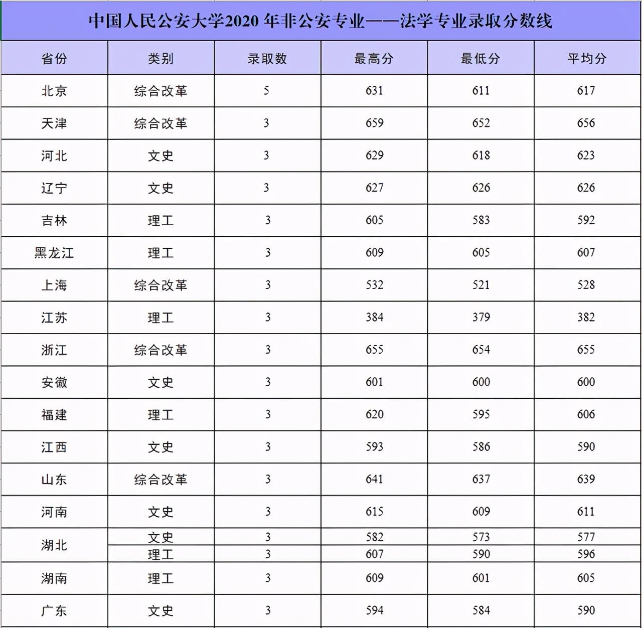 1,公安大学2020年在各招生省市内:普通计划,专项计划类录取分数线: