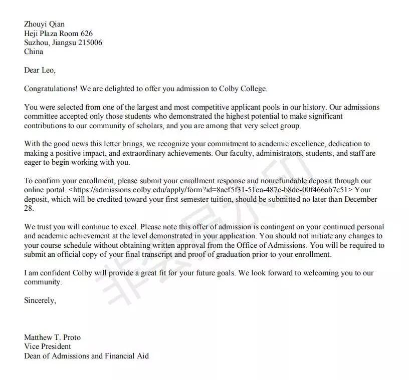 文书写作的确是大部分理工科学生的通病。郑老师教他如何写出好的文书,有铺垫,有起伏,有引人入胜的故事情节。并在申请材料与文书中注意扬长避短,将他在理工与电脑方面的天赋经过恰到好处的包装,成功吸引了招生官的注意,取得了科尔比学院的offer,作为全美顶尖文理学院之一,科尔比学院以提供的精英式的本科通识教育著称。