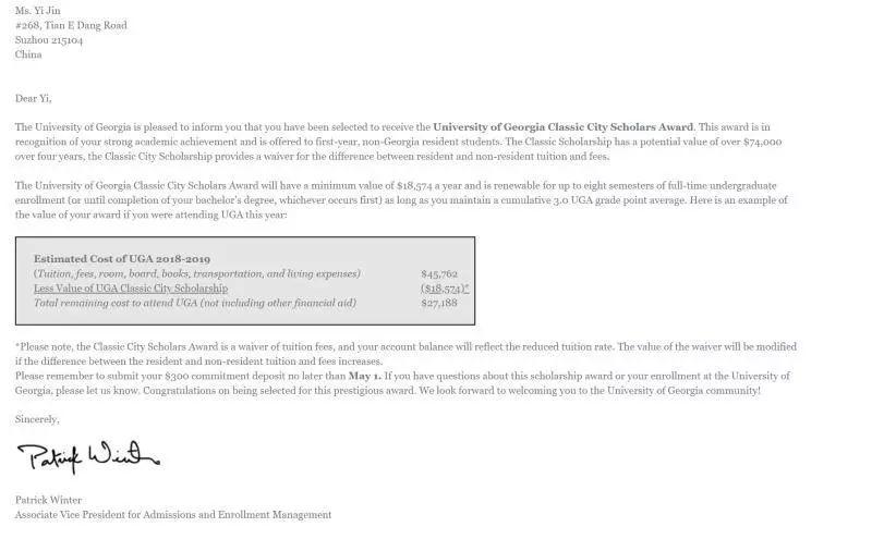 GPA4.11, 托福101,SAT 1430,AP两门5分,一门4分,这是北美学子Bella的成绩,凭借出色的表现,她斩获了美国顶尖私立大学罗彻斯特大学(2019 US NEWS美国大学综合排名中位列第33位)和佐治亚大学的offer, 并荣获佐治亚大学4年共计约52万人民币的奖学金。尽管战功赫赫,但是在北美形成的不断探索的精神又促使她继续前行,获得了仅提供两个名额的大二暑假到美国国会实习的珍贵机会。