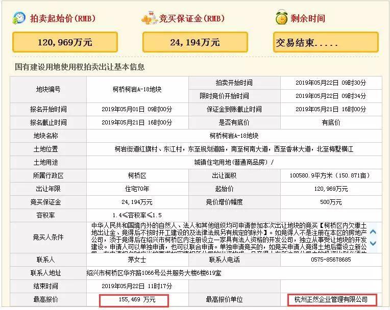 经过64轮竞拍 ,祥生拿下柯桥柯岩A-18地块
