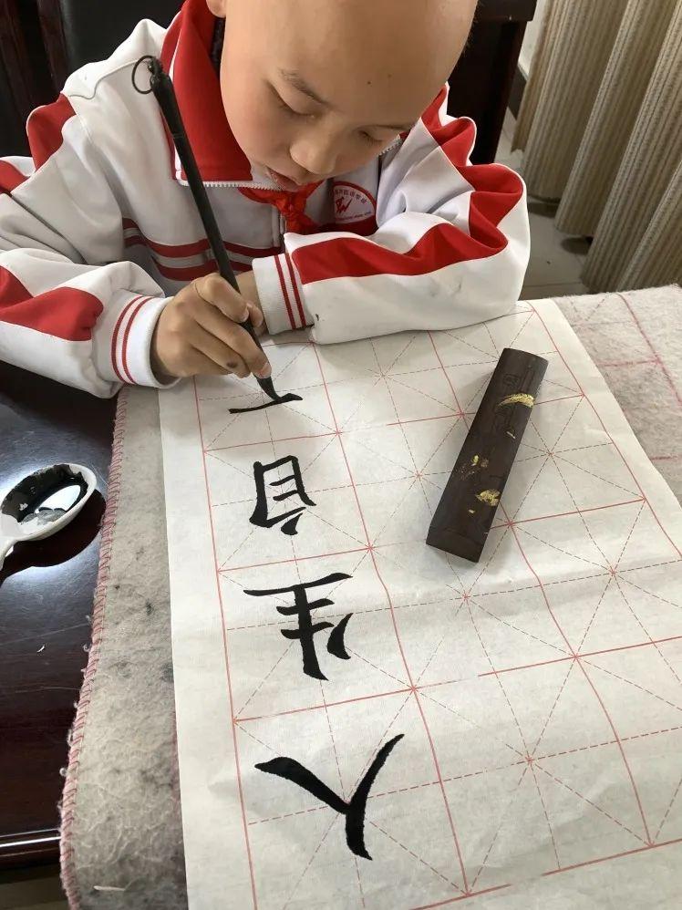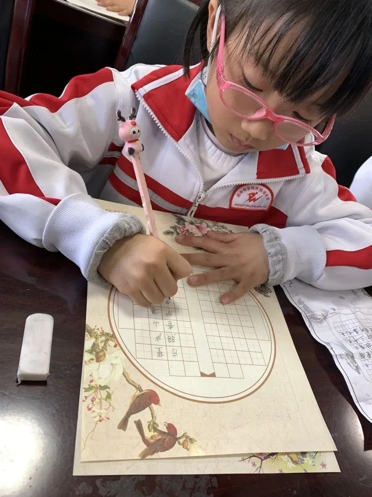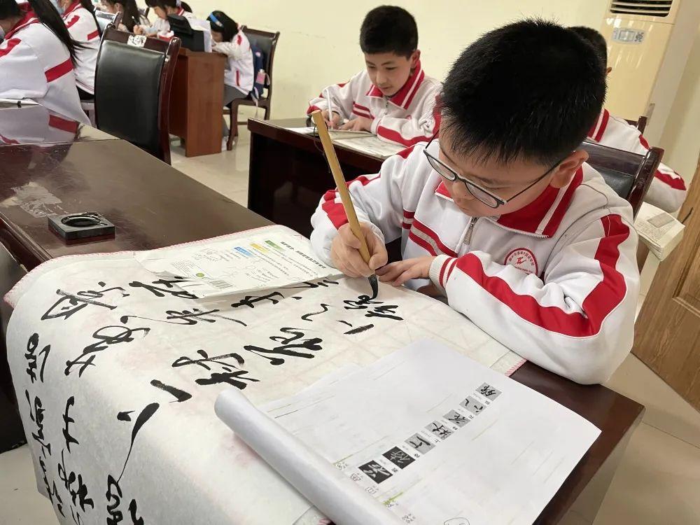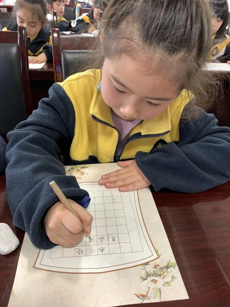 决赛分为1-2年级、3-4年级、5-6年级三个组别。“用笔在心,心正则笔正”。书法赛场上,同学们注重运笔,合理布局,认真分析字的间架结构,从橫竖撇捺到起笔收笔,笔画流畅,字形挺拔,展示了他们平时坚持练习书写的扎实功底,以实际行动践行着“字如其人"的真谛。