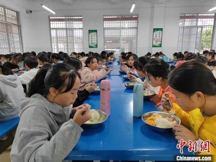资料图:学生在食堂用餐。王以照 摄