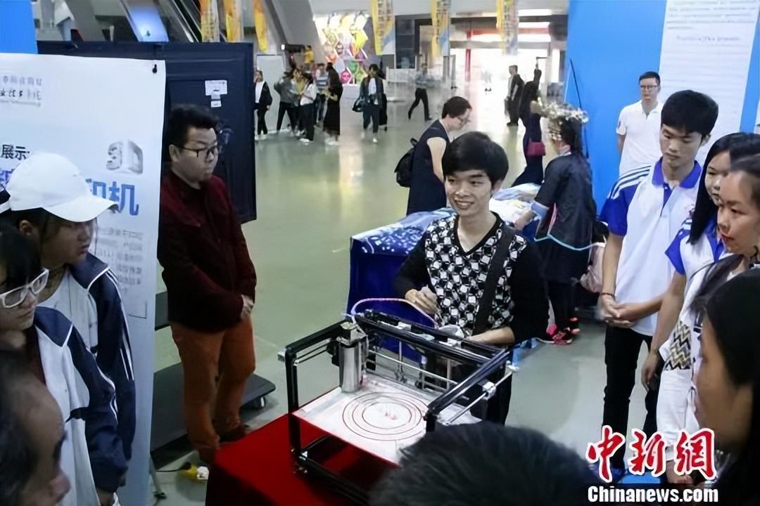资料图:职校学生展示3D糖画打印机。朱柳融 摄