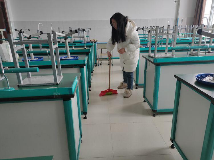 会后,老师们抓紧时间开始整理清扫。目前,南阳小学功能室大多集中在教学楼五楼,有:数学仪器室、美术器材室、科学仪器室、科学实验室、图书室、档案室等10多个功能室,每个科室都有一名专人负责,整个五楼一片紧张有序的工作状态。