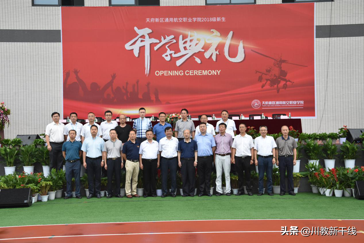 四川航空集团公司董事长李海鹰(左6)等领导莅临学校开学典礼
