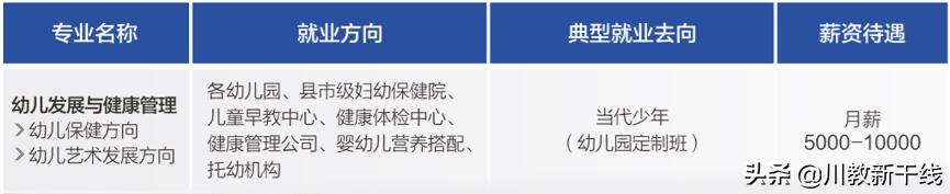 就业领域:主要面向各幼儿园、县市级妇幼保健院、儿童早教中心、健康体检中心、健康管理公司、婴幼儿营养搭配、托幼机构等处从事教育等工作。