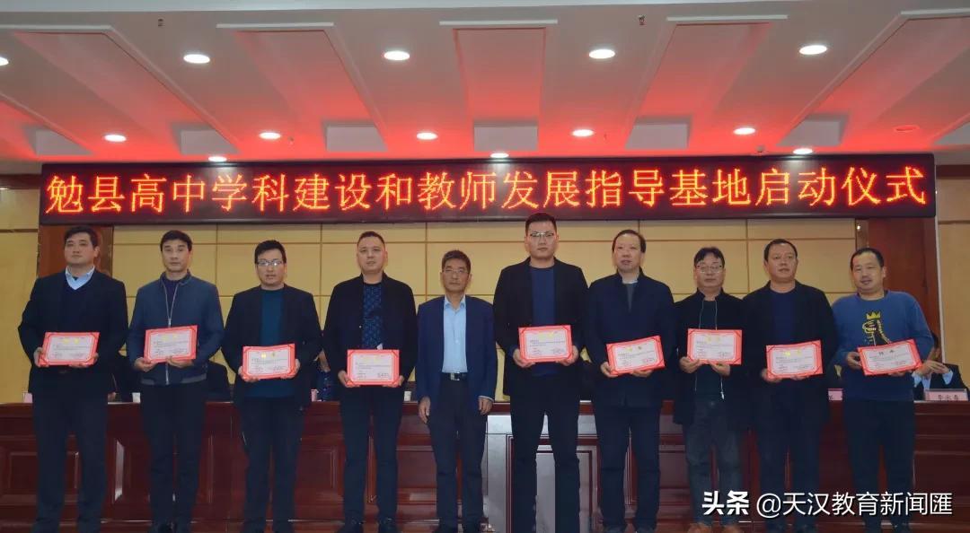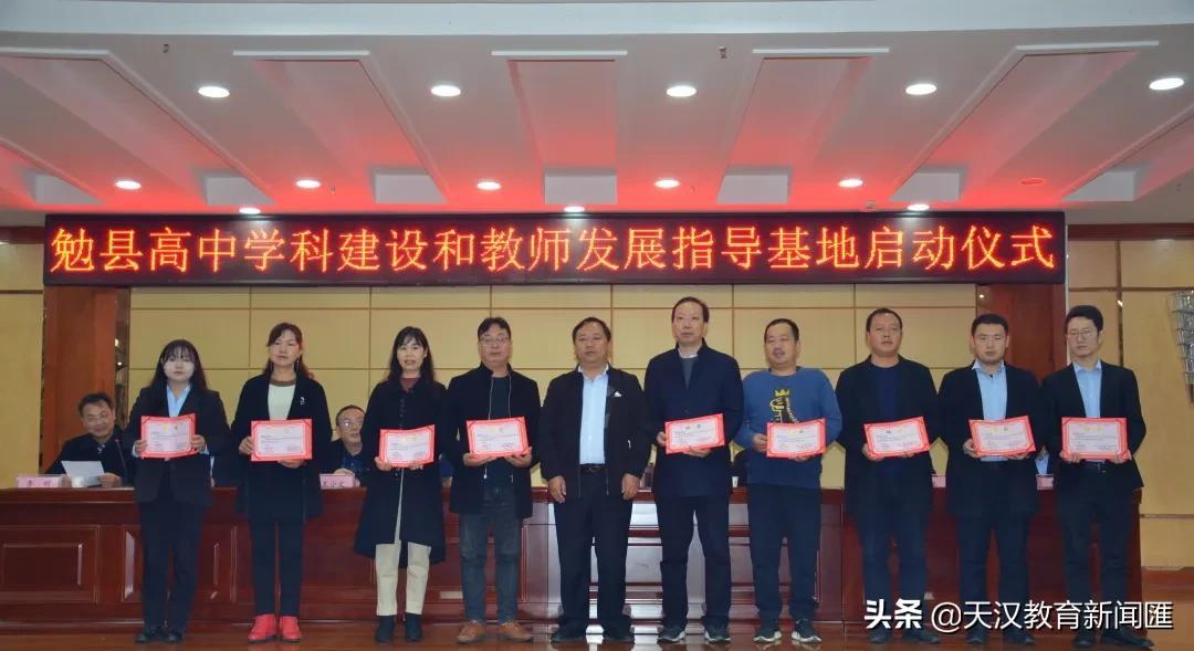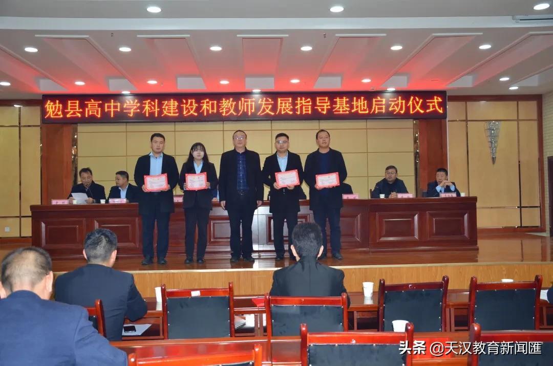 勉县教育体育局局长唐保平、副局长晏泽民,勉县教学研究室主任王小文为学科基地核心成员颁发聘书。