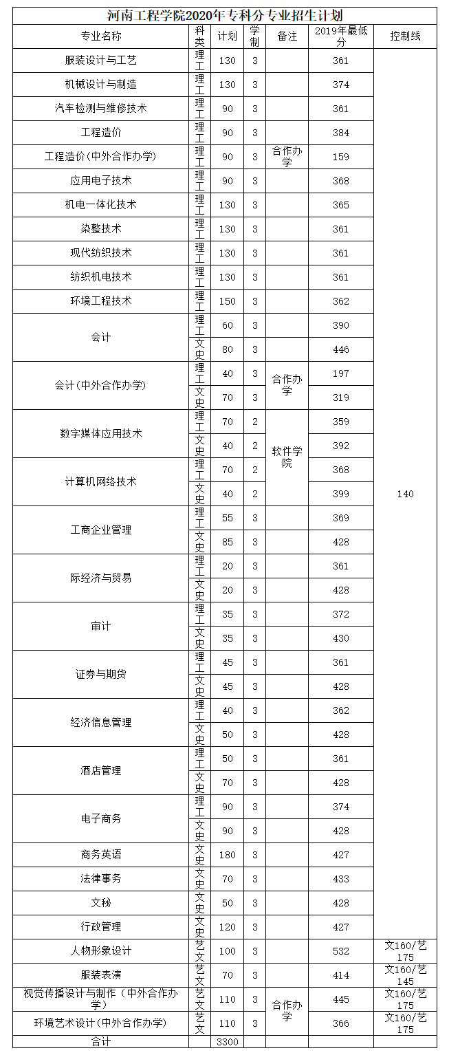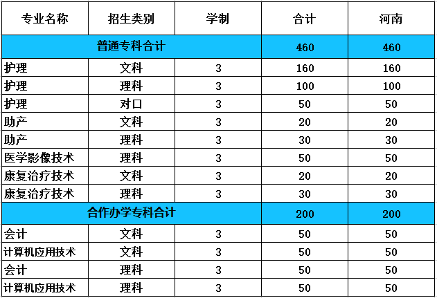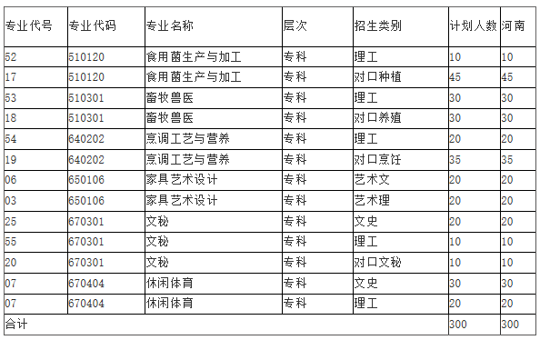 2020河南省内专科招生计划