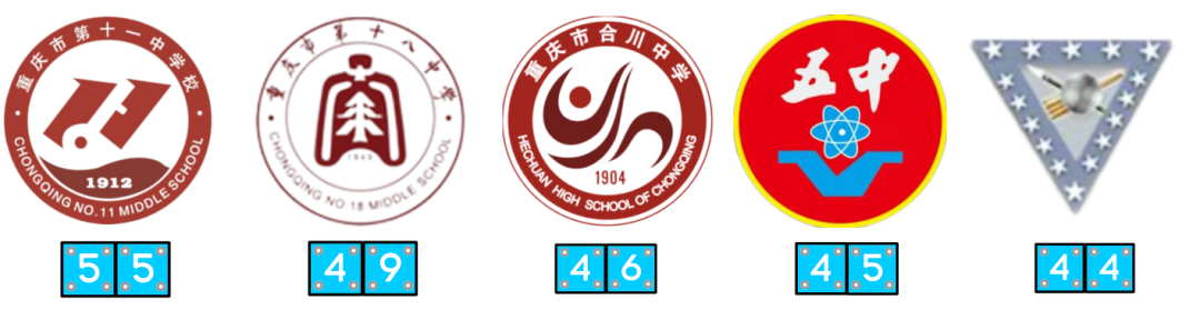 重庆市内高中录取人数TOP5为重庆市第十一中学校(55人)、重庆市第十八中学(49人)、重庆市合川中学(46人)、重庆市涪陵第五中学校(45人)、重庆市江津中学校(44人)。