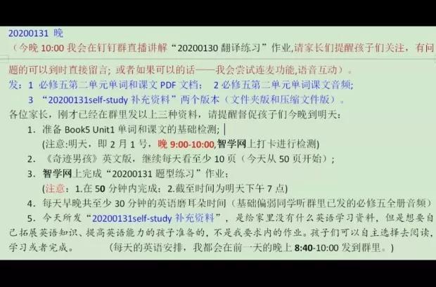 年初三晚上,各科老师将考试试卷发在家长的钉钉群里,打印或者下载电子版。年初四早上7:40,学生开考,直到下午6:20结束,下发答案自行批改。