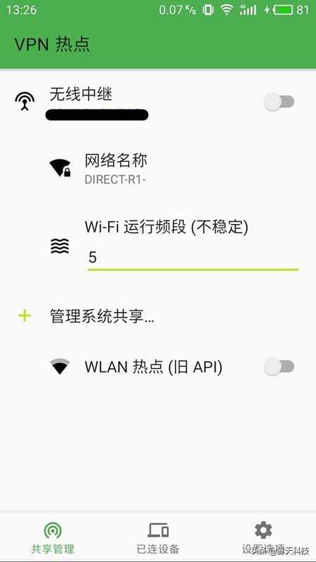 现在大部分新手机支持双路wifi,系统自带双路wifi功能的支持,可以直接打开热点和wifi同时使用,而这个方法可以用在不支持双路wifi的手机上,这里只提供该方法,不包教会。