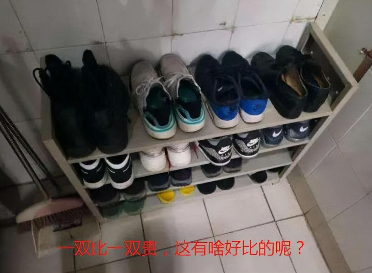 女生寝室晒化妆品,男生寝室则喜欢晒鞋子,有大学生晒了一张寝室的鞋架照片,上面一双比一双昂贵,好像穿普通的运动鞋就输了一样,虽然说有时候男生攀比的点很奇怪,但是在这方面和女生晒口红是一样的。