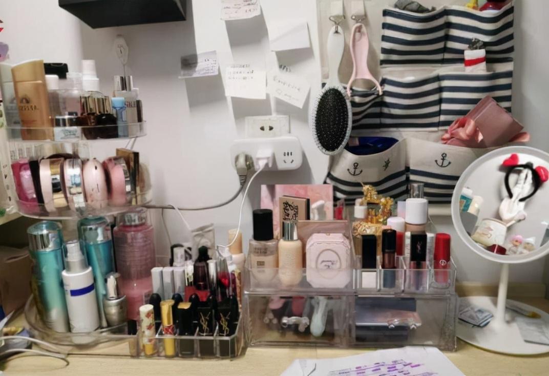 甚至有时候为了撑门面,不少大学生会特地把贵的化妆品摆在明面上,便宜的则收起来,这样的做法也揭露了高校宿舍的攀比现状,不少网友看也会直呼人间真实。