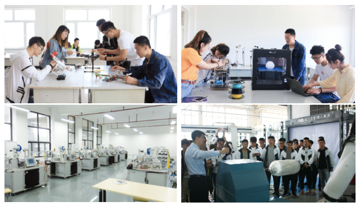 学院建有传感器与检测技术、无人机、物联网、3D打印、大数据技术、工业机器人、服务机器人等18个专业实验室,满足教学和科研需要。学院还建有机器人文化展馆、机器人3D展示馆、机器人媒体展示馆、机器人体验馆等专业场馆, 以满足学生机器人创新实训的需要。2016年,学校在牡丹江市投资1.2亿元,建成了2万平米的集教学、科研、生产、培训、实习五大功能于一体的、省内先进的、具有机器人技术与应用教育特色的机器人创新创业基地。学院在上海、青岛、西安、苏州、牡丹江等多个地区建有机器人创新创业实践教学基地,实施订单培养,与全国百余家公司联合建立校内外实习实训基地,搭建了培养学生适应职场和创新、创业能力的平台,毕业生就业率始终保持在较高水平。