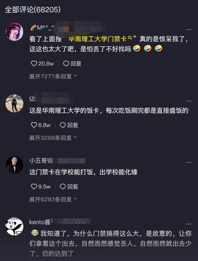 确实,确实,这饭卡扔在地上,估计没几个人不会被吓到。因此还有人调侃说我们华南农业大学的饭卡学校里能打饭,出了学校还能化缘,你就说咱牛不牛吧。