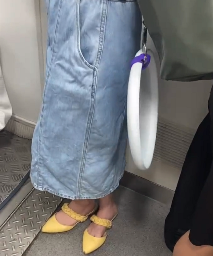 这位女同学的腰上别了一个什么东西,怎么这么大?随着地铁车厢还摇摇晃晃的,这位网友看了好久,最终得出了一个哭笑不得的结论,这居然是个饭卡。