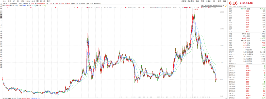 教培行业巨震波及范围之广,龙门教育母公司科德教育(300192)自然难以幸免,我们看到公司股价已经从最高点28.78元跌至8.16元,跌幅超70%,尤其在《双减》出台后的前两个交易日,累计跌幅达23.04%。