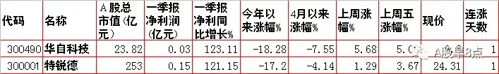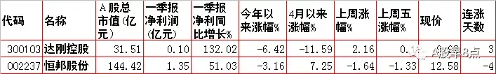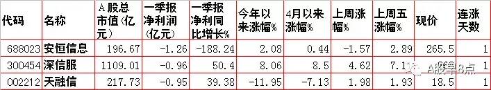 (000008)神州高铁,(000557)西部创业,(000572)ST海马,(000582)北部湾港,(000589)贵州轮胎,(000633)合金投资,(000650)仁和药业,(000863)三湘印象,(000938)紫光股份,(000950)重药控股,(000951)中国重汽,(000955)欣龙控股,(000999)华润三九,(002057)中钢天源,(002074)国轩高科,(002145)中核钛白,(002164)宁波东力,(002234)民和股份,(002245)蔚蓝锂芯,(002246)北化股份,(002339)积成电子,(002497)雅化集团,(002536)飞龙股份,(002551)尚荣医疗,(002564)天沃科技,(002601)龙蟒佰利,(002603)以岭药业,(002624)完美世界,(002626)金达威,(002627)宜昌交运,(002639)雪人股份,(002695)煌上煌,(002734)利民股份,(002758)浙农股份,(002848)高斯贝尔,(002892)科力尔,(002893)华通热力,(002917)金奥博,(002981)朝阳科技,(002999)天禾股份,(003039)顺控发展,(300046)台基股份,(300059)东方财富,(300065)海兰信,(300077)国民技术,(300095)华伍股份,(300120)经纬辉开,(300121)阳谷华泰,(300129)泰胜风能,(300133)华策影视,(300151)昌红科技,(300158)振东制药,(300163)先锋新材,(300168)万达信息,(300211)亿通科技,(300215)电科院,(300219)鸿利智汇,(300220)金运激光,(300254)仟源医药,(300272)开能健康,(300280)紫天科技,(300290)荣科科技,(300294)博雅生物,(300307)慈星股份,(300338)开元教育,(300358)楚天科技,(300363)博腾股份,(300381)溢多利,(300393)中来股份,(300395)菲利华,(300403)汉宇集团,(300419)浩丰科技,(300424)航新科技,(300428)四通新材,(300462)华铭智能,(300486)东杰智能,(300492)华图山鼎,(300525)博思软件,(300535)达威股份,(300536)农尚环境,(300537)广信材料,(300550)和仁科技,(300561)汇金科技,(300577)开润股份,(300585)奥联电子,(300587)天铁股份,(300597)吉大通信,(300602)飞荣达,(300610)晨化股份,(300612)宣亚国际,(300643)万通智控,(300650)太龙照明,(300652)雷迪克,(300654)世纪天鸿,(300660)江苏雷利,(300669)沪宁股份,(300680)隆盛科技,(300691)联合光电,(300693)盛弘股份,(300696)爱乐达,(300731)科创新源,(300743)天地数码,(300745)欣锐科技,(300749)顶固集创,(300752)隆利科技,(300762)上海瀚讯,(300763)锦浪科技,(300778)新城市,(300780)德恩精工,(300789)唐源电气,(300813)泰林生物,(300819)聚杰微纤,(300830)金现代,(300836)佰奥智能,(300840)酷特智能,(300853)申昊科技,(300878)维康药业,(300885)海昌新材,(300906)日月明,(300956)英力股份,(300963)中洲特材,(300983)尤安设计,(600070)浙江富润,(600141)兴发集团,(600182)S佳通,(600227)圣济堂,(600232)金鹰股份,(600239)云南城投,(600292)远达环保,(600299)安迪苏,(600325)华发股份,(600329)中新药业,(600337)美克家居,(600468)百利电气,(600528)中铁工业,(600529)山东药玻,(600538)国发股份,(600548)深高速,(600586)金晶科技,(600611)大众交通,(600658)电子城,(600728)佳都科技,(600753)东方银星,(600800)渤海化学,(600869)远东股份,(600893)航发动力,(600929)雪天盐业,(600998)九州通,(601566)九牧王,(601666)平煤股份,(601727)上海电气,(601798)蓝科高新,(603010)万盛股份,(603033)三维股份,(603040)新坐标,(603041)美思德,(603088)宁波精达,(603156)养元饮品,(603160)汇顶科技,(603198)迎驾贡酒,(603283)赛腾股份,(603353)和顺石油,(603488)展鹏科技,(603508)思维列控,(603519)立霸股份,(603701)德宏股份,(603707)健友股份,(603727)博迈科,(603799)华友钴业,(603885)吉祥航空,(603893)瑞芯微,(603903)中持股份,(605003)众望布艺,(605060)联德股份,(605088)冠盛股份,(605303)园林股份,(605500)森林包装,(688017)绿的谐波,(688068)热景生物,(688088)虹软科技,(688096)京源环保,(688109)品茗股份,(688158)优刻得,(688556)高测股份,(688585)上纬新材,(688618)三旺通信,(688633)星球石墨,(688636)智明达,(688665)四方光电