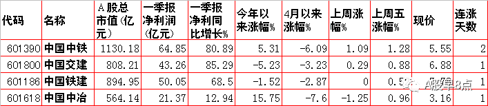 相关概念股:中国建筑、中国交建、中国铁建、中国中冶