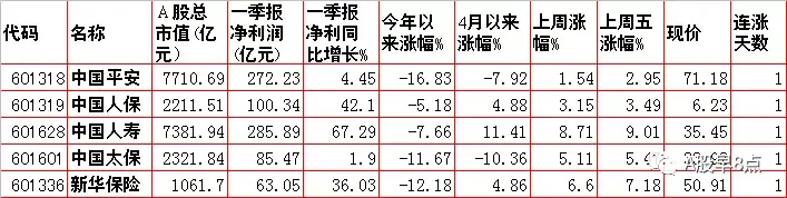 相关概念股:中国平安、中国人保、中国人寿、中国太保、新华保险