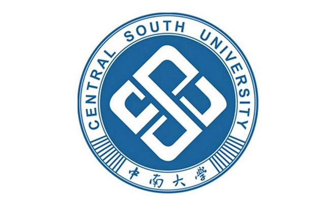 学校徽志为双圆套圆形徽标,色彩为蓝、白。创意源自传统的中国结造型。图形以“中南大学”英文缩写字母“CSU”为结构中心,形成中国结造型。正下方有“中南大学”中文字样,正上方为环形英文CENTRAL SOUTH UNIVERSITY大写字样,左右下侧方各由10条线连接内外圆。