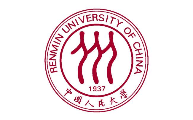 校徽是圆形篆书人字徽标,以“人大红”为标准色,以三个并列的篆书“人”字图形为基础,寓意“人民、人本、人文”;下方有“1937”字样,代表学校建校时间;外环上方是“中国人民大学”的英文大写,下方是中国人民大学第一任校长吴玉章题写的校名。