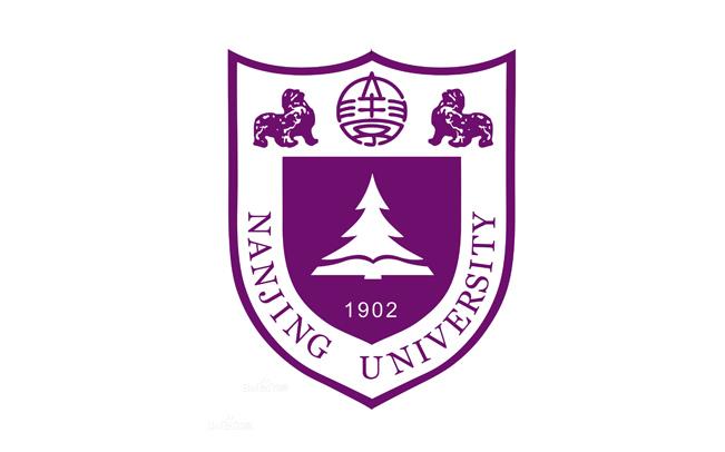 校徽外形采用盾形的设计风格,该风格为中央大学时期所流传下来。校徽的左下方及右下方为英文 “NANJING UNIVERSITY”。南大校徽确定了特定色值的紫色为标准色,并将其命名为南大紫。校徽正中为南京市——雪松,寓意南大坚忍不拔的精神。雪松的下方为书图案及“1902”字样,点明南京大学的建校时间为1902年。校徽的上方中间部位为由“南京”的艺术字体所组成的圆形图案,其两旁各有一只金陵辟邪神兽(貔貅),是南京的标志。(图册:南京大学视觉形象规范化标准)。