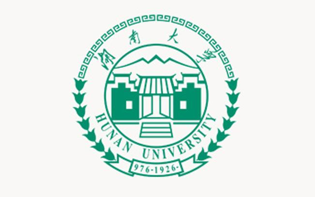 校徽以岳麓书院正门为中心,以岳麓山为背景,象征着湖南大学这所“千年学府、百年名校”办学历史悠久,教育传统深厚。中心圆的上方是主席1950年8月20日亲笔题写的“湖南大学”校名,下方为校名英译“Hunan University”。正下方的飘带上两组数字“976”和“1926”,分别为岳麓书院创建和湖南大学定名的时间。两侧共有十四瓣枫叶,代表当时(1986年)全校设立的14个系。