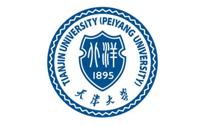 学校校徽为圆形。校徽中间为盾形主体,主体上部为篆书“北洋”,底部为数字“1895”。盾形外侧为“TIANJIN UNIVERSITY(PEIYANG UNIVERSITY)”和“天津大学”均匀排列。校徽边沿为 51 个齿状修饰。