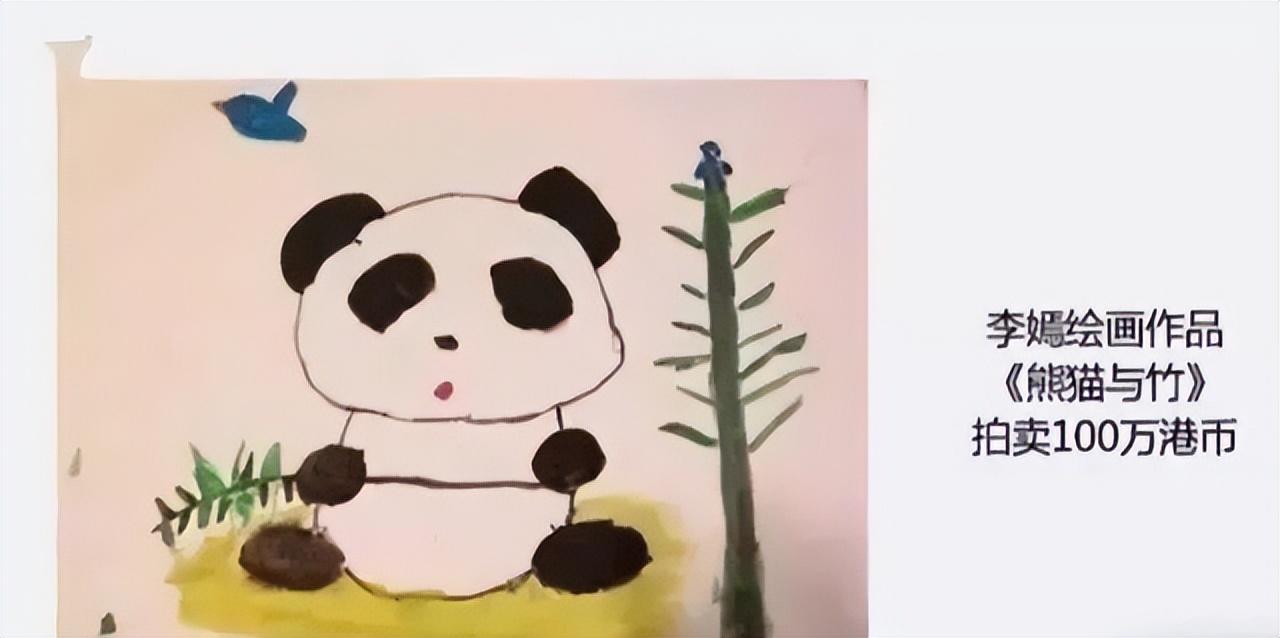 她一副熊猫画作,在拍卖会上拍出了一百多万的高价。诚然,有王菲和李亚鹏的名气成分在,但是李嫣的画作生动有灵气也是能拍卖出高价的原因。