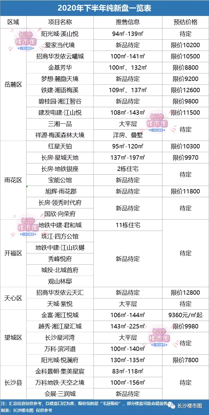 那么2020年下半年在长沙如何选房,地图妹为大家盘点了以下新盘:
