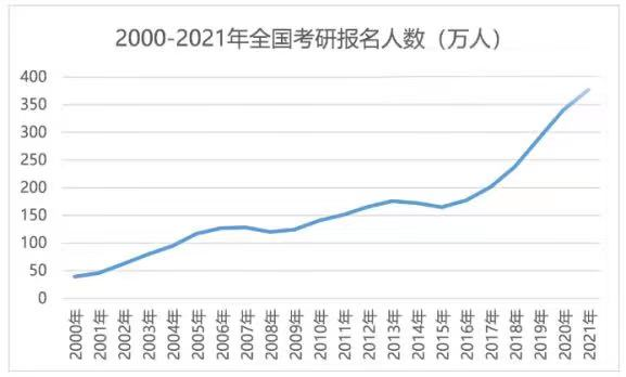 (2000--2021年,我国研究生报考人数趋势图)