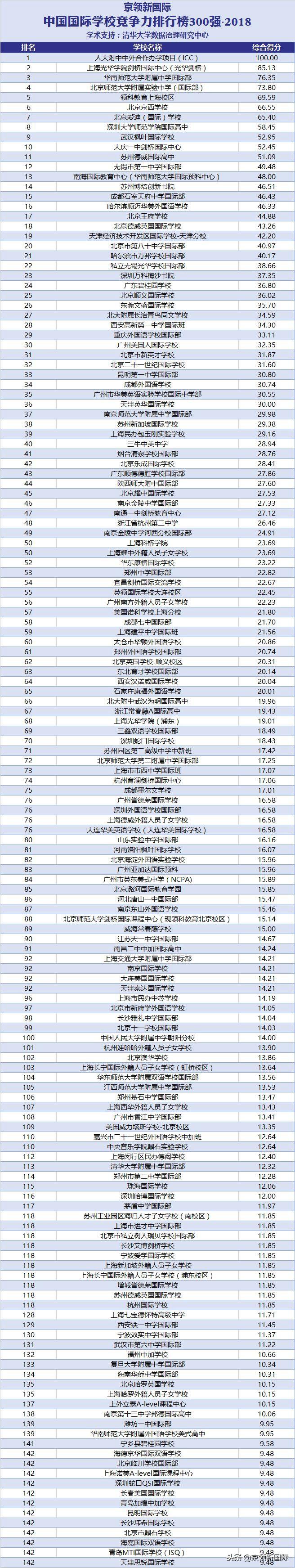 2018年10月31日,京领新国际在清华大学数据治理研究中心的学术支持下,首次制作和发布了“2018年国际学校竞争力300强排行榜”。该榜单基于国际学校官方网站的公开数据,通过建立科学可量化的评估指标体系,综合考察了中国现有国际学校的竞争力,并选拔出前300强。