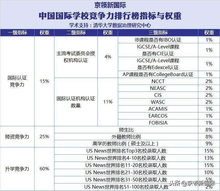 面对北京地区如此多可供选择的国际学校,规范办学、师资力量、以及升学质量成为了评判国际学校办学质量的重要标杆。本文将以京领新国际榜单的三大指标体系:国际认证竞争力,师资竞争力,升学竞争力,来详细评估和解读北京地区的国际学校竞争力。