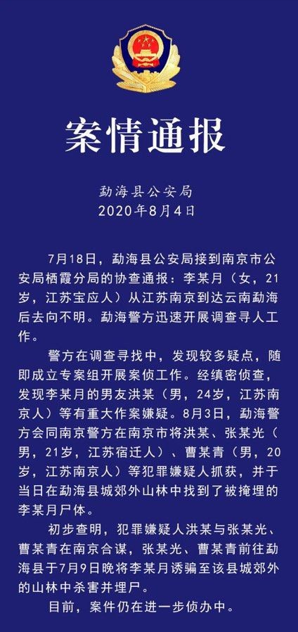 云南和南京的警方开始携手调查李倩月的失踪案,这个案件被上升到刑事案件的高度。