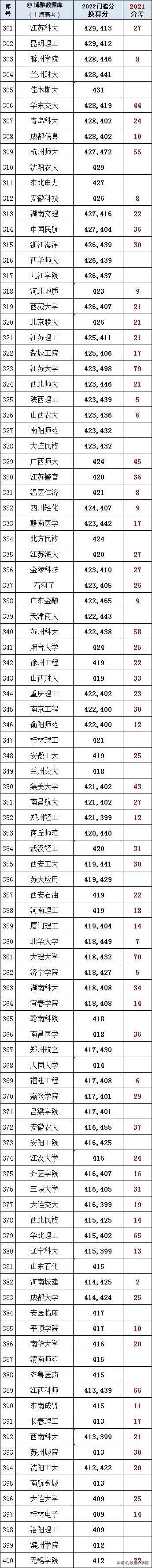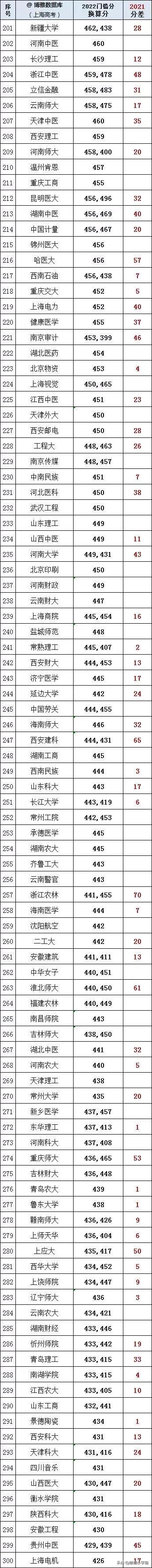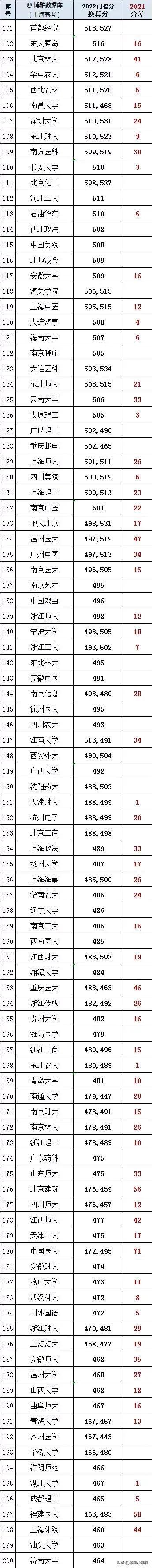 2022年全国高校在上海的预估录取分数线是根据全国高校近几年在上海的投档位次综合预估出来,预估的分数线主要是高校的门槛分,也就是最低投档分,具体专业之间的分差还是需要重点考虑进去的,一般高校的最差专业和最好的专业之间的分差还是很大的哦!一般一个学校的冷门专业或者中外合作办学专业、护理专业都是比特招线高一点即可录取,但是顶尖专业都会高好几十分的情况!所以在填报志愿的时候,注意专业的层次选择,具体且看下面分析。