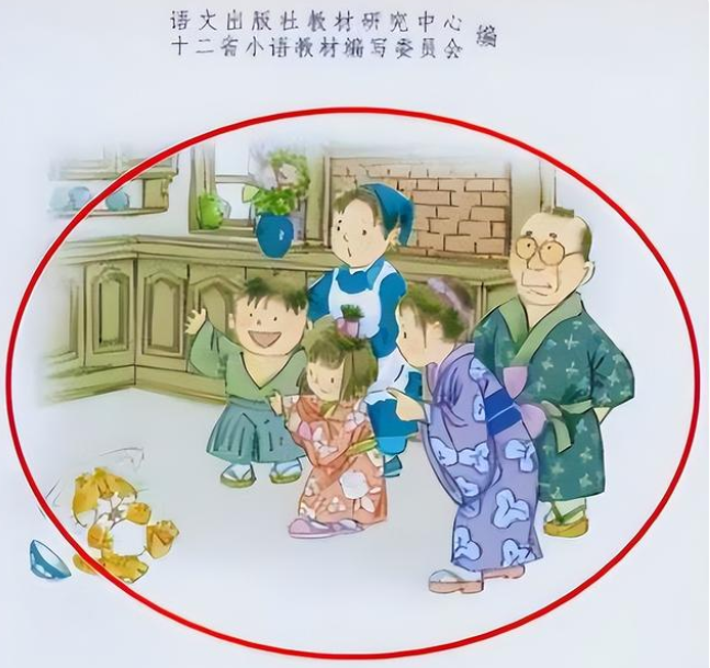 还有一本学生读物的封面更加离谱,画面是一位中国保姆服侍日本人一家四口,不知道的还以为是日本学生的教辅书,这些问题都透露出一个隐患,或许真的有人夹带私货,教材编写过程中的审核需要加强了。