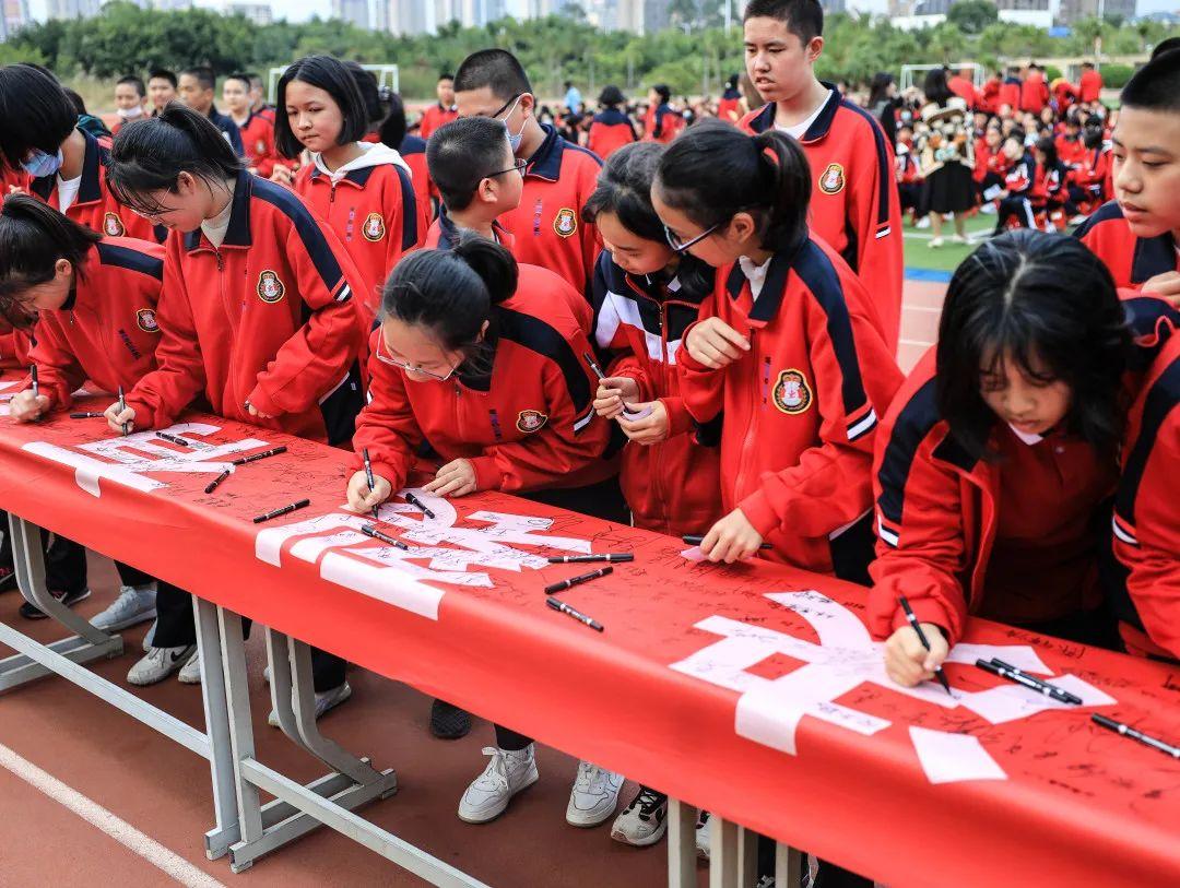 为了正校风、严学风,更好地优化育人成才环境,形成良好的校园“讲文明”氛围,11月16日下午,福清文光学校初一年级举行了以“立德树人 自强不息”为主题的千人宣誓签名主题教育活动。福清文光学校校领导顾问林华春、德育处主任林万强、校团委书记陈晓云、年级主任陈红、年级主任邹文钊出席了本次大会。