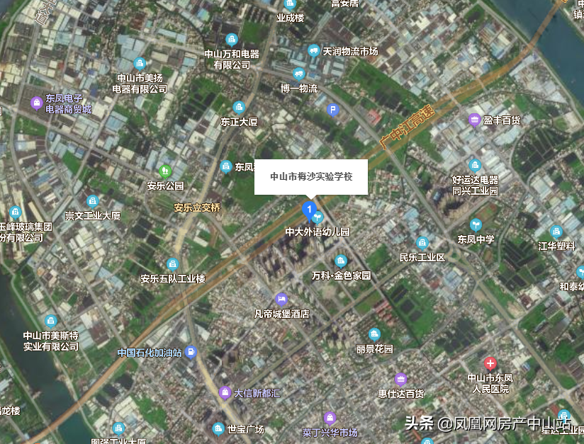 学校位于东凤镇,中大外语幼儿园旁。项目占地面积2.6万平米,建筑面积2.1万平米,